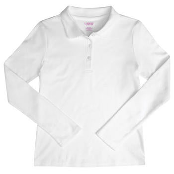 Polo, Girls White L/S Interlock Knit with Picot Collar (Feminine Fit)